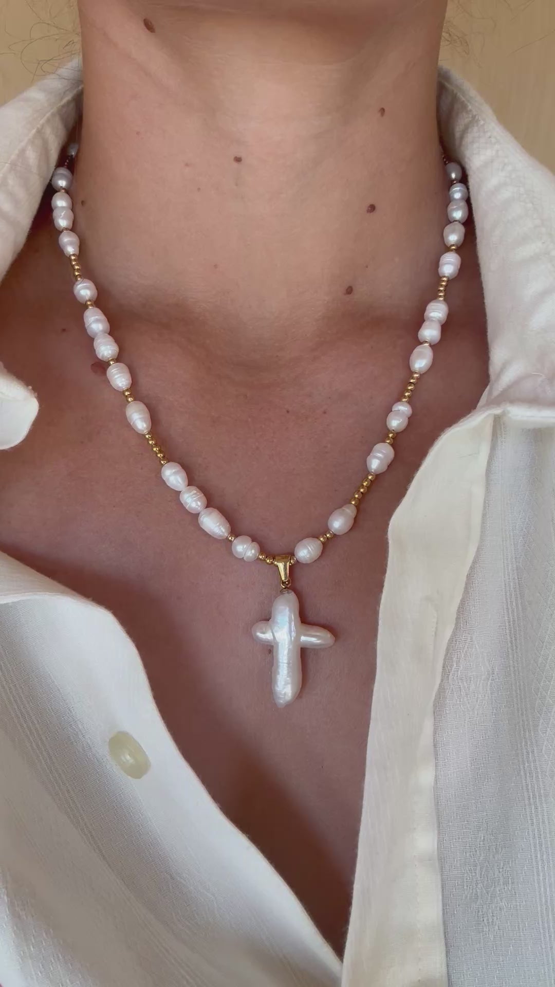 Fresh water pearl Cross- paperclip chainFresh water pearl Cross- paperclip chain