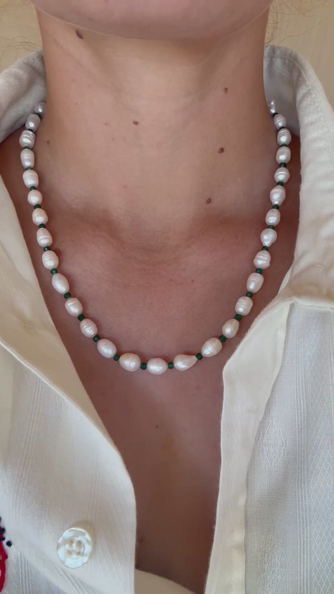 Fresh water pearl- its irregular movement is part of the beauty and uniqueness of the pearl, not one is the same yet so complimentary to one another.