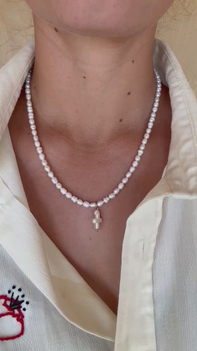 Fresh water pearl- its irregular movement is part of the beauty and uniqueness of the pearl, not one is the same.